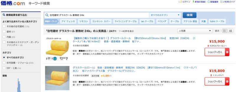 同じ柱、断熱材を揃えるのにかかる費用はいくらくらいだろうか?